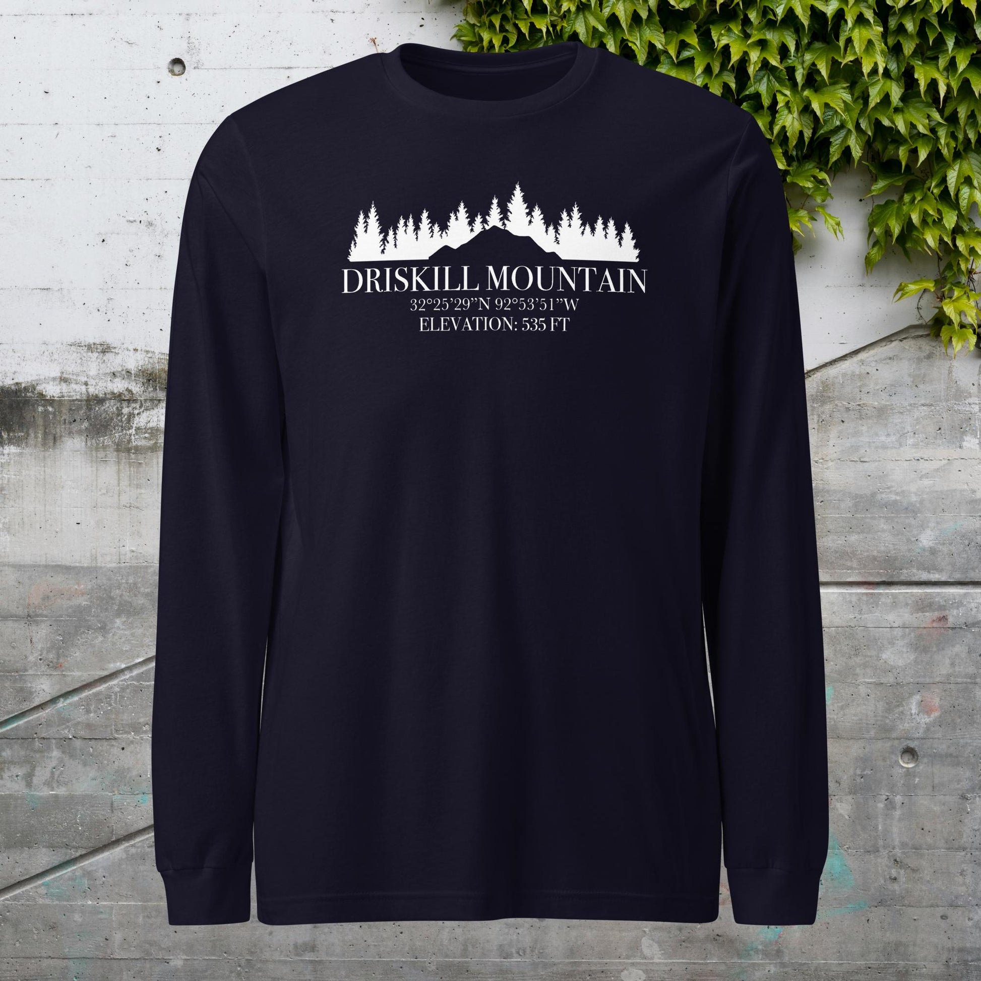 At 535 feet, Driskill Mountain may not be the tallest—but it’s proudly Louisiana’s highest point. Whether you’ve made the climb or just love a good underdog story, this long sleeve tee is a subtle, stylish nod to a place that proves elevation isn’t everything.